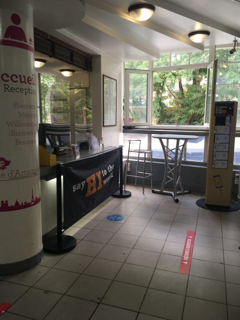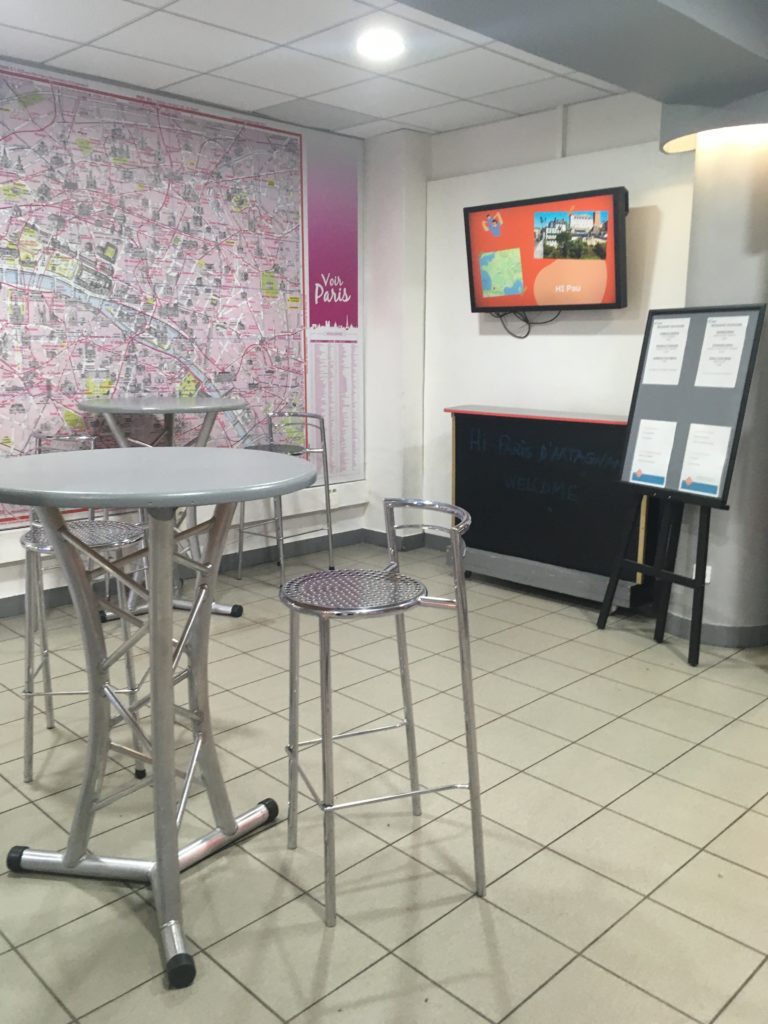Auberge de jeunesse de Paris- Le d’Artagnan Donner un ton plus actuel à cet espace en créant un lieu d’échange et de rencontre confortable et chaleureux, sans toucher au plafond et sol. Avant : © Emeline Godon
